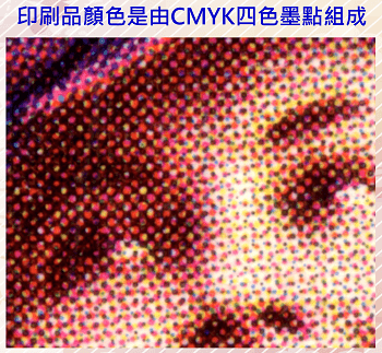 - 印在紙上的顏色除了少數特別色外,是由青(Cyan)、洋紅(Magenta)、黃(Yellow)、黑(Black)四色組成,也就是俗稱的CMYK。