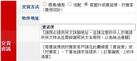 2、送印時請先下單及上傳檔案,但不要付款。在進入步驟二的「交貨方式」選擇 『寄國外或賣貨便、好賣家(費用另計)』,底下收件地址填入您使用的平台是賣貨便或好賣家。