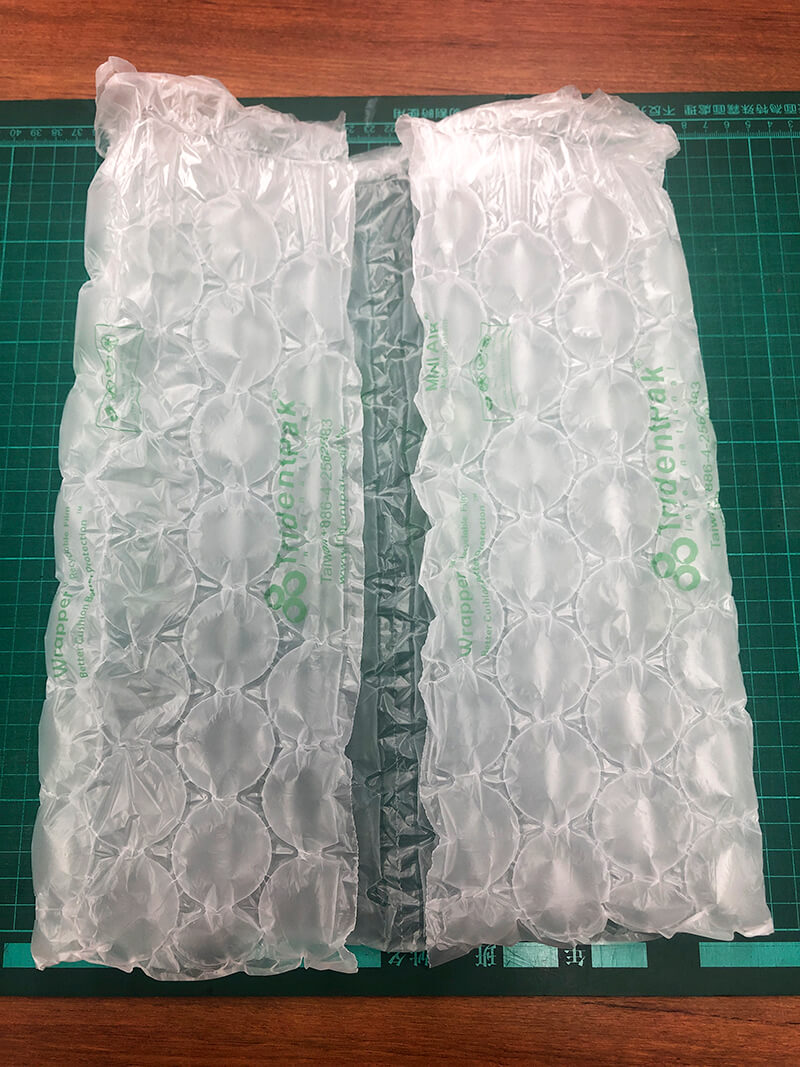 (自2022/7/1起為加強包裝之保護效果,包裝方式改為:內裝防撞效果較佳的「緩衝氣墊」(如下圖),外包裝仍為破壞袋,如本數超過一本,會加裝OPP袋。如本數更多或厚度較厚有需要再加強保護,外包裝會改用紙箱。)